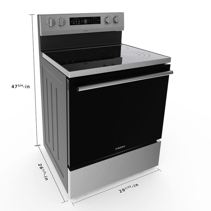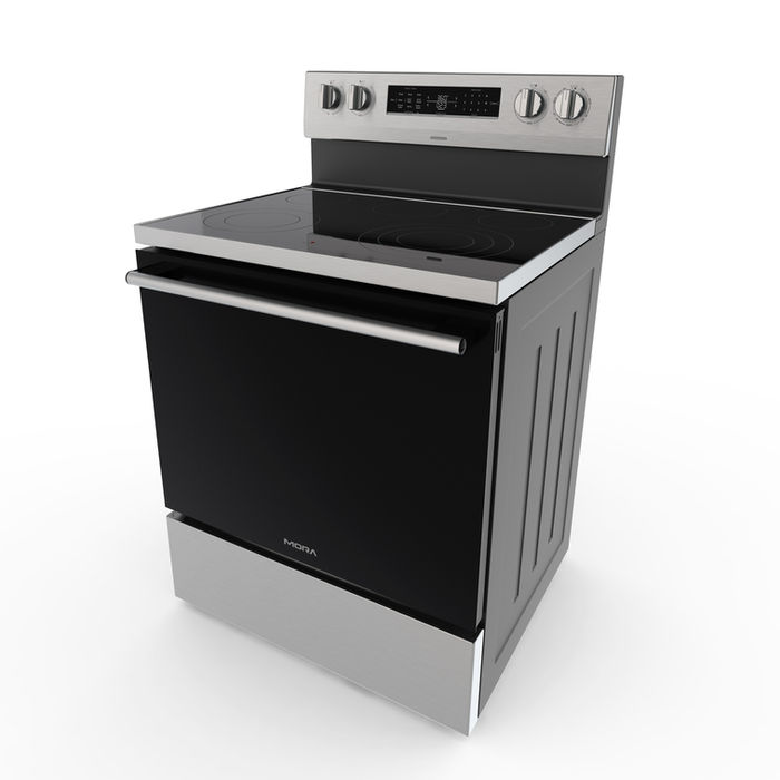 This spacious MORA stainless steel freestanding electric range comes with a large 5.8 cu. ft. capacity and air fry function for healthier alternative to fried foods, but with the same crunch. The true convection oven gives you faster and more even baking and roasting by circulating heating air around food continuously. With 11 different special modes, you can cook whatever you want with just one click.